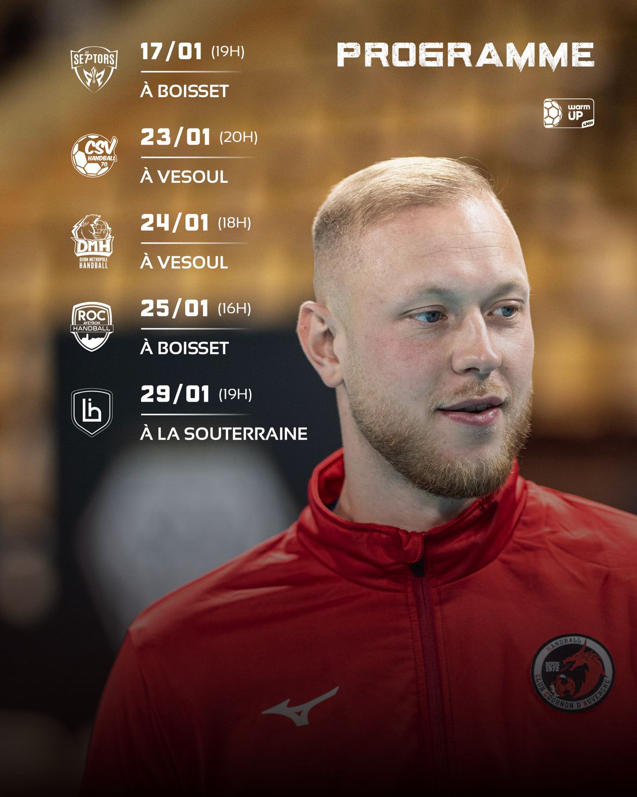 Les 23 et 24 janvier, nos Dragons participent à un tournoi de préparation organisé par le Vesoul Handball, l’occasion idéale de monter en puissance avant la reprise officielle🔥